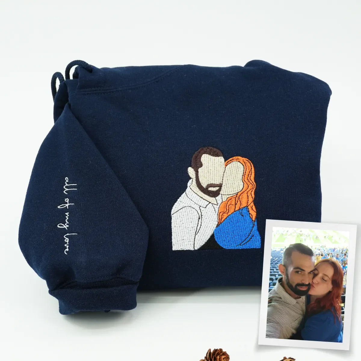 Celebrate your special milestone with our custom embroidered anniversary sweatshirts or hoodies. Featuring a full-color portrait of you and your partner, this personalized gift captures your love in a stylish and cozy design. Made from high-quality fabric, it’s perfect for anniversaries, weddings, or Valentine’s Day. Customizable for a truly unique keepsake, this piece is a heartfelt way to carry your memories wherever you go. Order today and make your anniversary unforgettable!